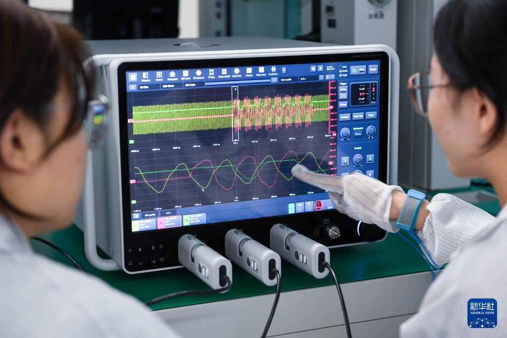 10月13日,在深圳市萬(wàn)里眼技術(shù)有限公司,實(shí)驗(yàn)室人員分析高速信號(hào)時(shí)序關(guān)系。