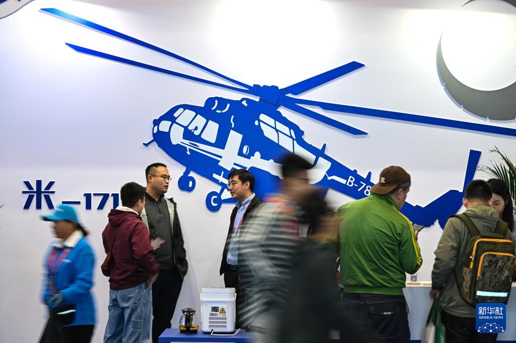 10月16日,觀眾在天津直博會直升機館內(nèi)參觀洽談。