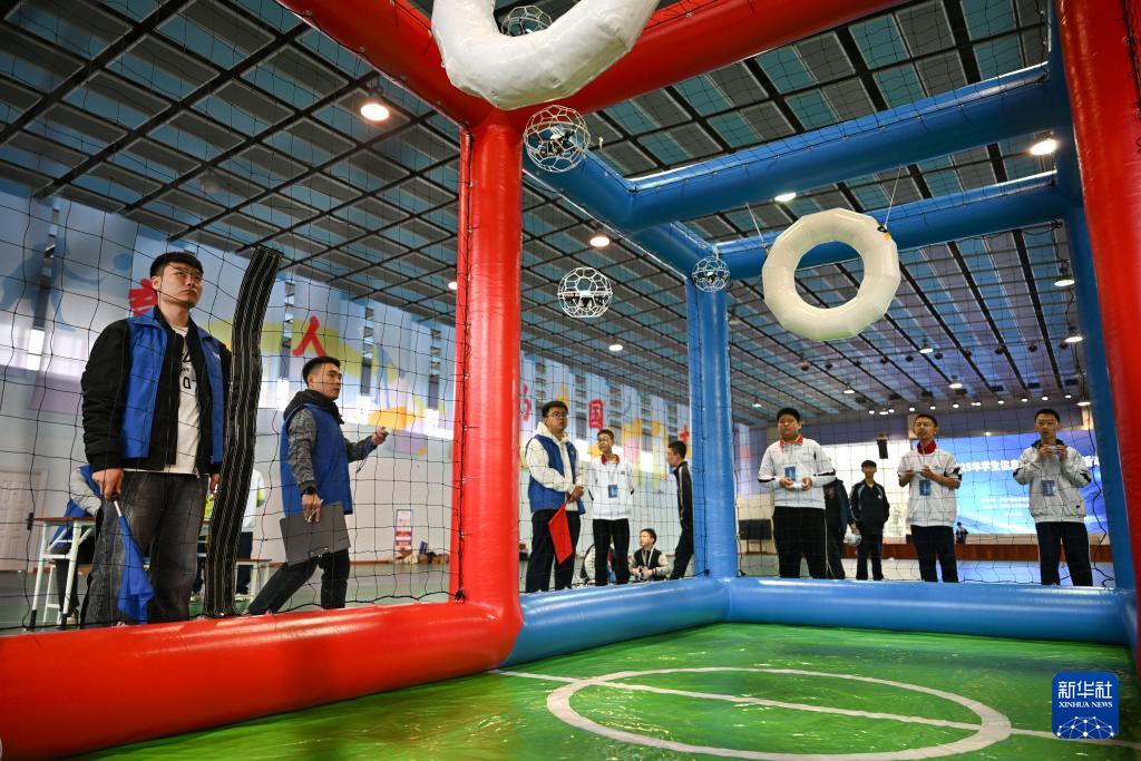 10月18日,學(xué)生在西安市新城區(qū)太華路小學(xué)參加多軸無(wú)人機(jī)足球?qū)官悺?/p>
