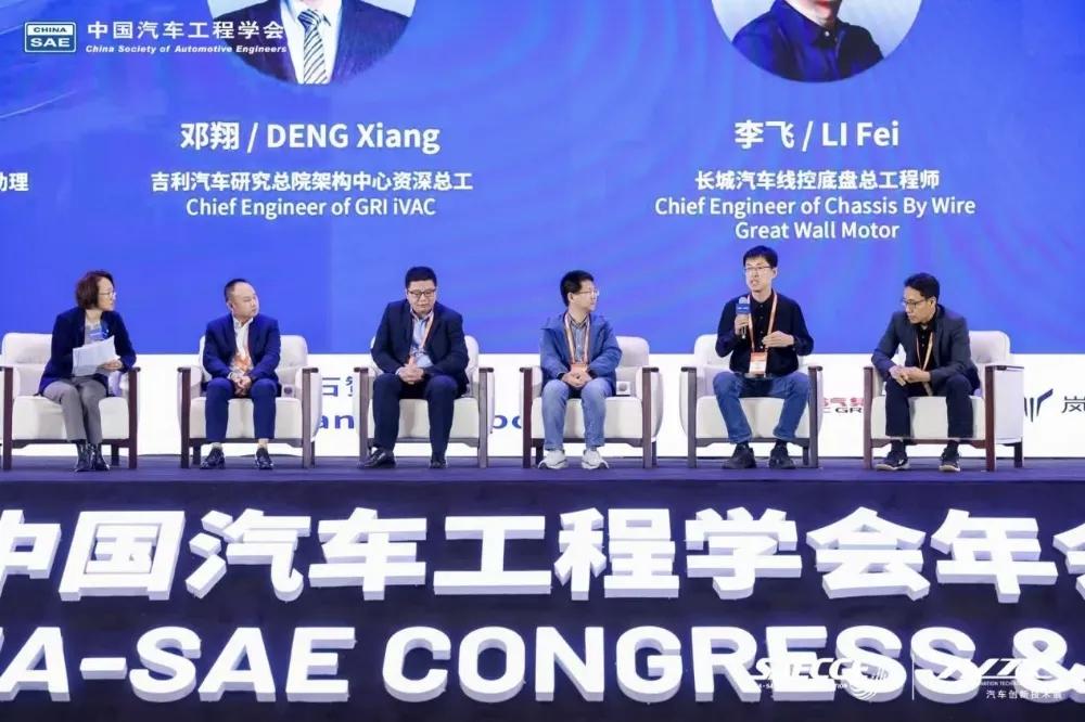 比亞迪底盤技術(shù)開發(fā)中心總監(jiān)廖銀生,吉利汽車研究總院架構(gòu)中心資深總工程師鄧翔,長城汽車線控底盤總工程師李飛,理想汽車智能底盤高級總監(jiān)趙亮,博世車輛運(yùn)動智控系統(tǒng)中國區(qū)新型制動系統(tǒng)產(chǎn)品副總裁張連沖圍繞“智能底盤從技術(shù)突破到量產(chǎn)落地”主題進(jìn)行了圓桌對話。圓桌對話環(huán)節(jié)由中國汽車工程學(xué)會智能底盤分會副主任委員侯杰主持。