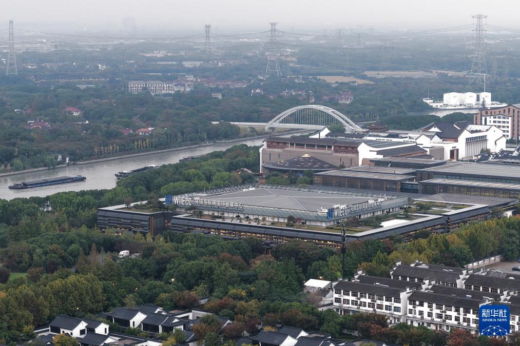 這是11月5日拍攝的烏鎮(zhèn)互聯(lián)網(wǎng)國際會展中心(無人機照片)。