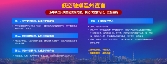 為推動(dòng)行業(yè)共識(shí)凝聚與規(guī)范發(fā)展,大會(huì)將組織北京航空航天大學(xué)、中國傳媒大學(xué)、中國電信等單位的專家學(xué)者,以及企業(yè)界、傳媒界代表和行業(yè)組織,舉辦多場(chǎng)專題論壇,深入討論低空融媒的定義、主要場(chǎng)景建設(shè)策略和城市地標(biāo)建設(shè)提議,完善低空融媒標(biāo)準(zhǔn)研制規(guī)劃和產(chǎn)業(yè)發(fā)展指南撰寫提綱,現(xiàn)場(chǎng)征集參編單位,并組織各參會(huì)方集體發(fā)布低空融媒《溫州宣言》。