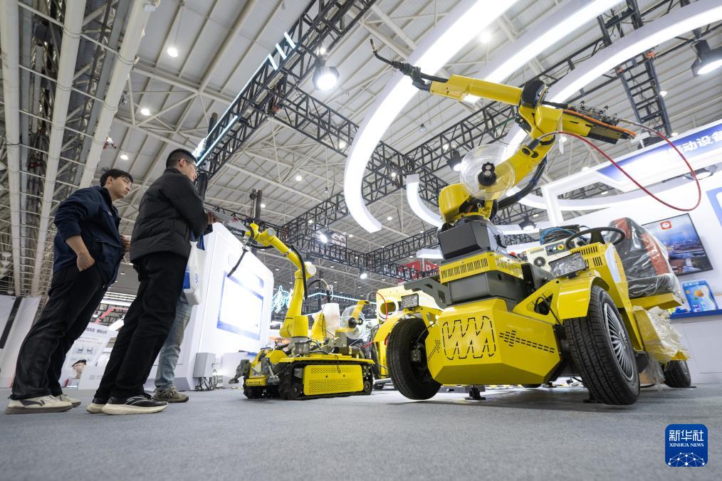 12月12日,參觀者在2025武漢國(guó)際工業(yè)設(shè)計(jì)博覽會(huì)上了解一款自行走全場(chǎng)景大件焊接機(jī)器人。