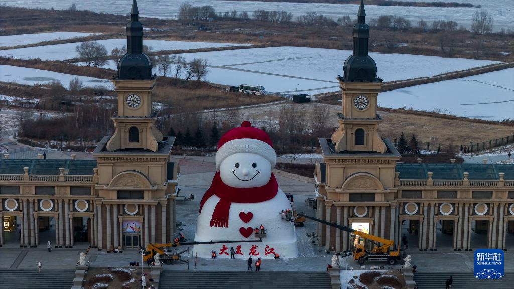 這是12月15日在哈爾濱市群力音樂公園拍攝的大雪人(無人機照片)。
