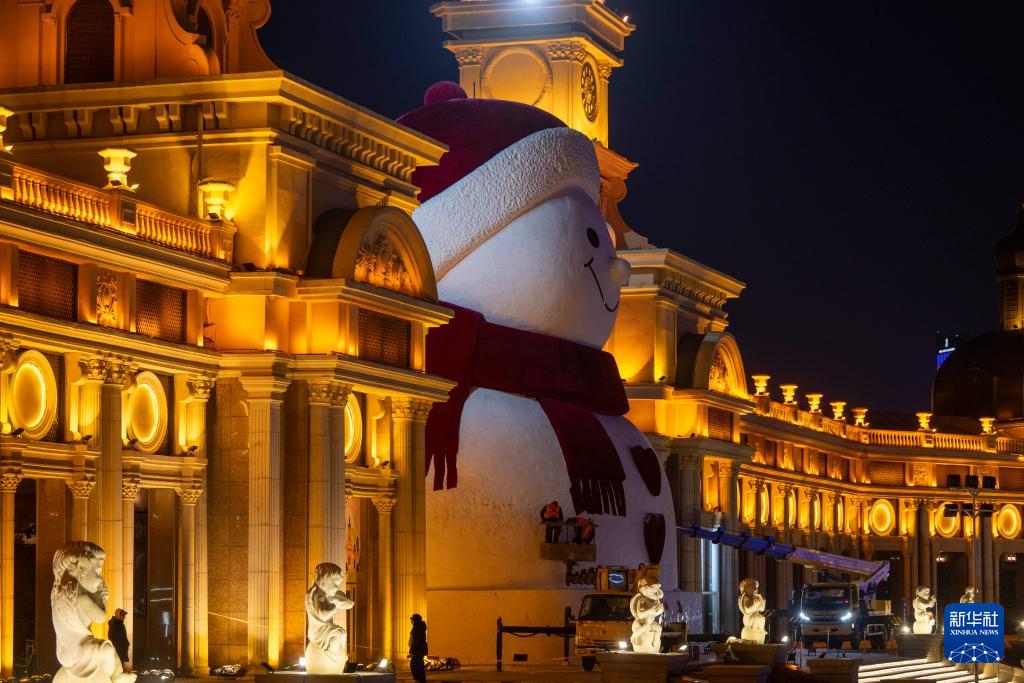 12月15日,哈爾濱市群力音樂公園大雪人完成主體建設(shè),進入到最后的細節(jié)打磨階段。大雪人設(shè)計身高19米、長14米、寬11米,總用雪量超過3000立方米,比往年增加1200立方米,為歷年之最。