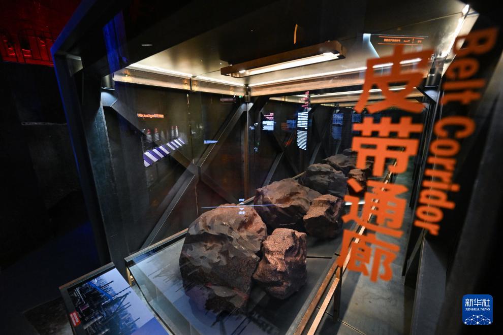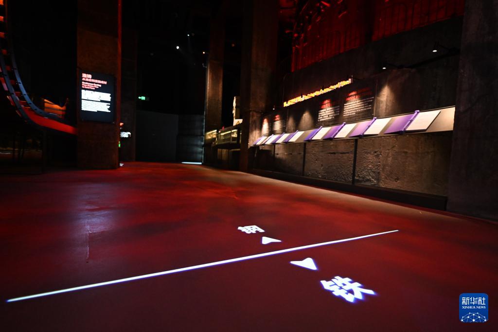 這是12月18日拍攝的“鋼鐵時代”沉浸展中的“皮帶通廊”。在過去,皮帶通廊將原料輸送至高爐。