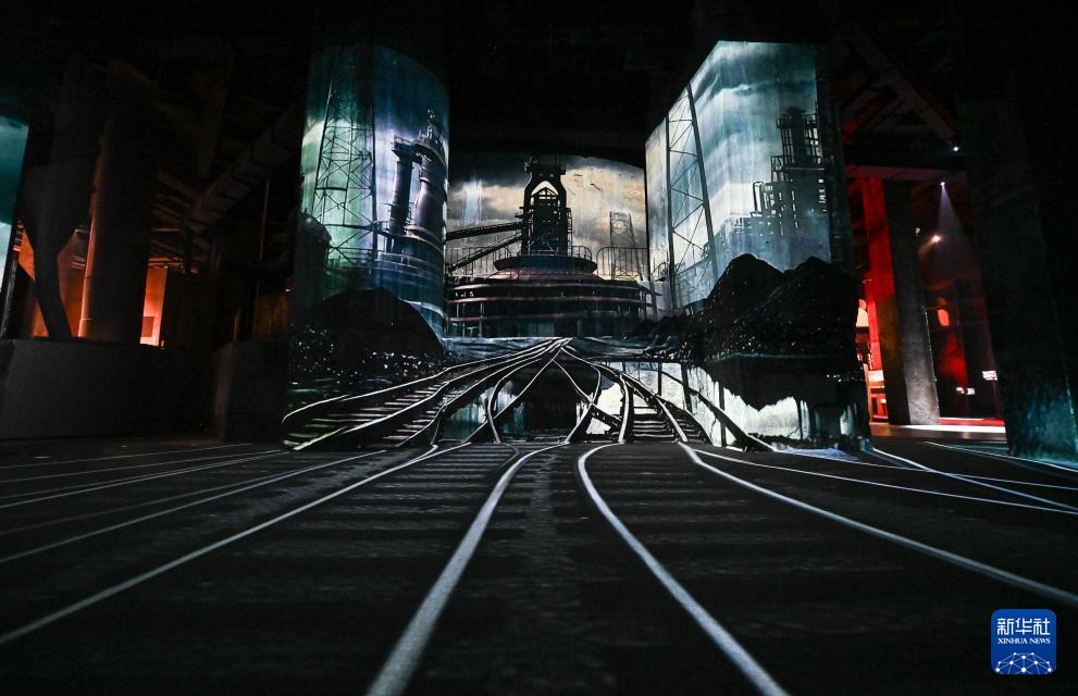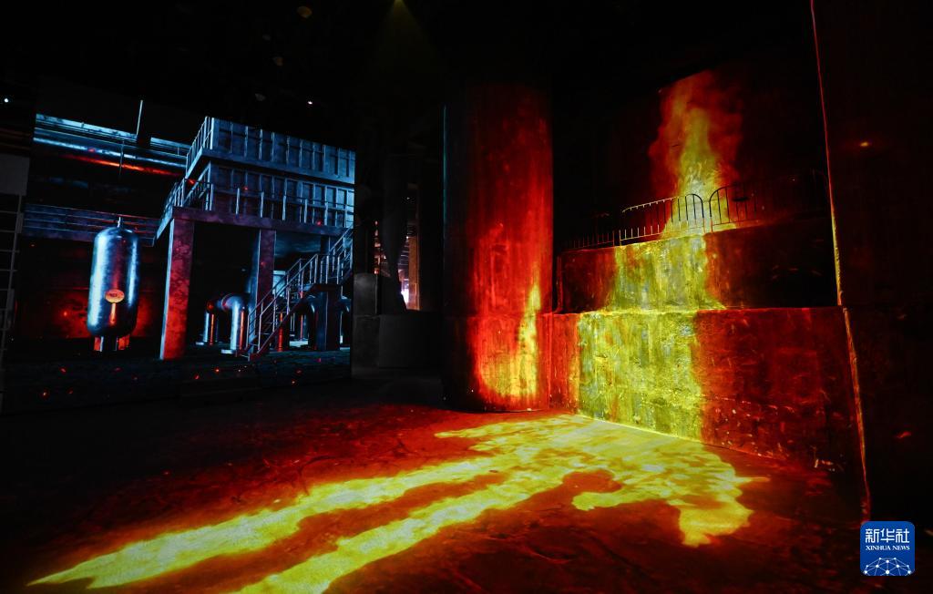 這是12月18日拍攝的“鋼鐵時代”沉浸展中的“高爐劇場”板塊。