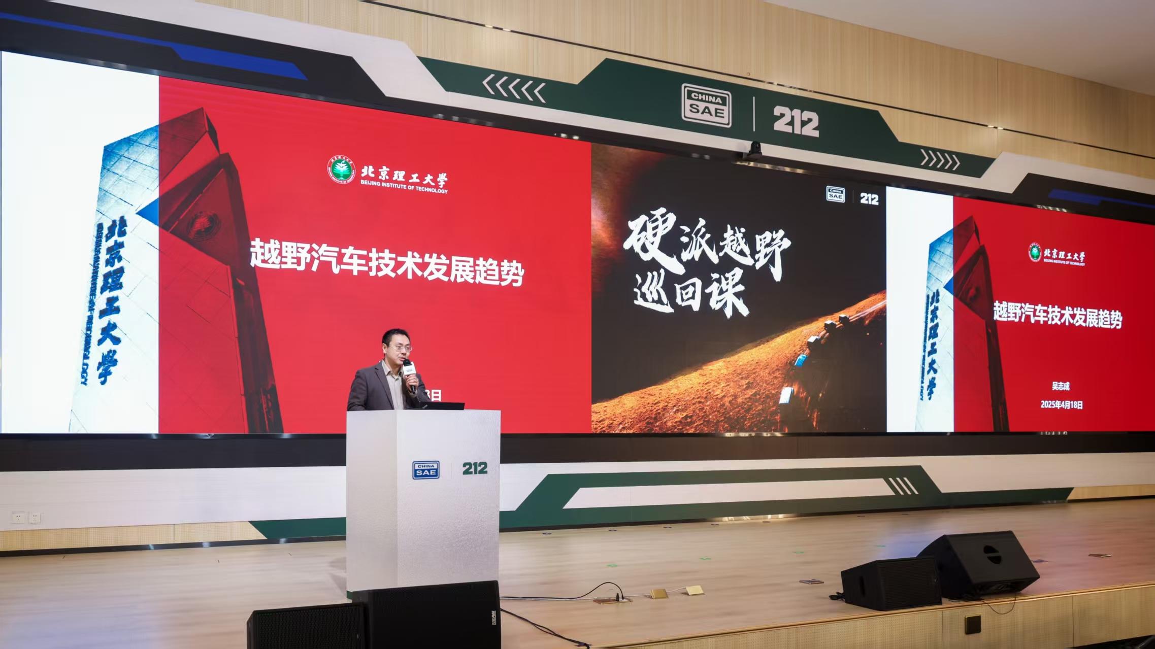 收官現(xiàn)場,中國科學(xué)院院士、中國北方車輛研究所研究員、先進(jìn)越野系統(tǒng)技術(shù)全國重點(diǎn)實(shí)驗室主任毛明,中國汽車工程學(xué)會會士、中國兵器首席科學(xué)家陳軼杰等行業(yè)權(quán)威專家蒞臨支持。專家們圍繞“從越野到越野學(xué)”帶來系統(tǒng)科學(xué)分享,在全年巡回課所聚焦的越野車型設(shè)計、底盤、動力、整車集成、產(chǎn)品定義、智能化等核心議題基礎(chǔ)上,為青年學(xué)子勾勒出越野科學(xué)的完整體系。這既是行業(yè)對212越野車“培養(yǎng)青年越野力量”初衷的高度肯定,更彰顯了中國越野事業(yè)代際傳承的殷切希望,也與212深耕越野領(lǐng)域、培育行業(yè)新生力量的理念不謀而合。