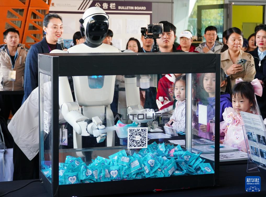 12月27日,機(jī)器人為現(xiàn)場(chǎng)觀眾發(fā)放禮品。