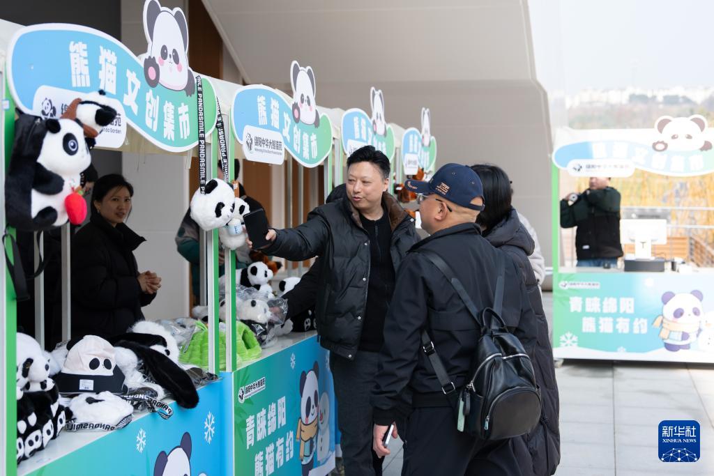 12月29日,游客在中國大熊貓保護研究中心綿陽基地熊貓文創(chuàng)集市上選購大熊貓文創(chuàng)產(chǎn)品。