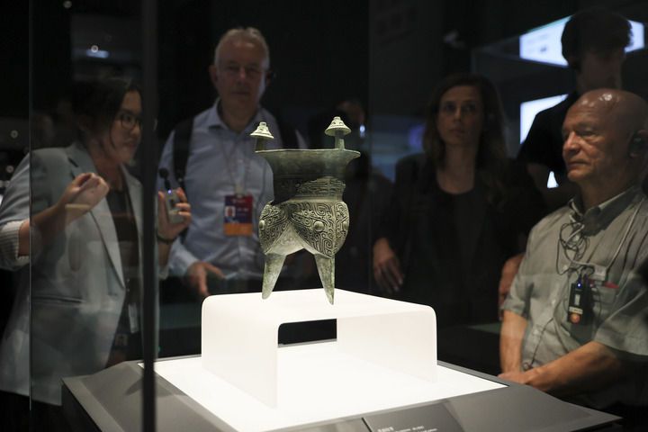 2025年10月13日,第二屆世界中國(guó)學(xué)大會(huì)“中國(guó)式現(xiàn)代化”主題參訪活動(dòng)嘉賓在上海博物館東館青銅館參觀。新華社記者 王翔 攝