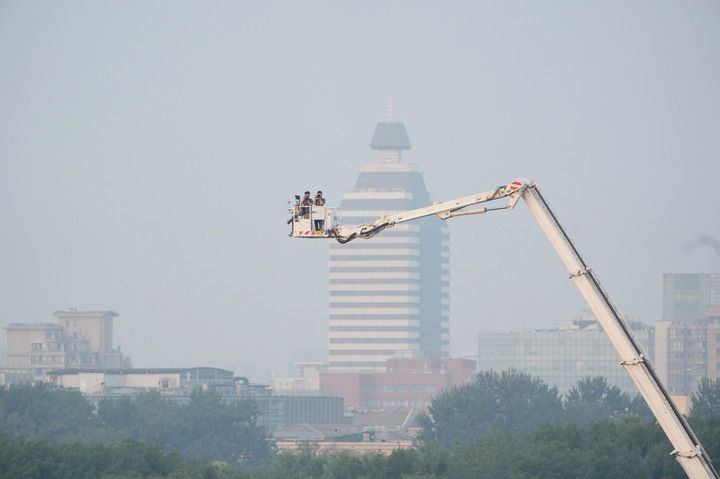 2025年9月3日清晨,報(bào)道紀(jì)念中國(guó)人民抗日戰(zhàn)爭(zhēng)暨世界反法西斯戰(zhàn)爭(zhēng)勝利80周年大會(huì)的媒體記者在工作中。新華社記者 賴向東 攝