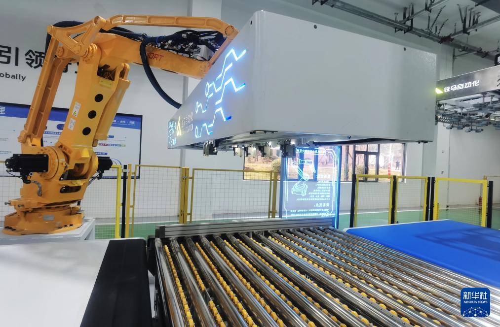 1月4日,在四川達(dá)州東部經(jīng)開區(qū)麻柳鎮(zhèn)的追覓希瑞智能科技(達(dá)州)有限公司生產(chǎn)線上,機(jī)器人在趕制出口智能床訂單。