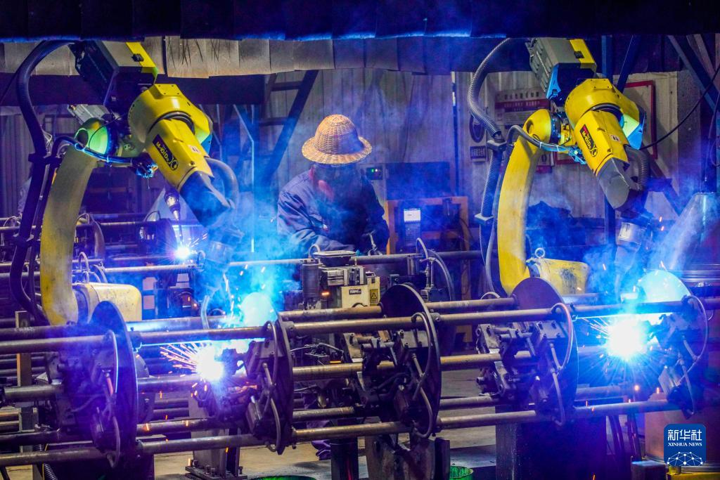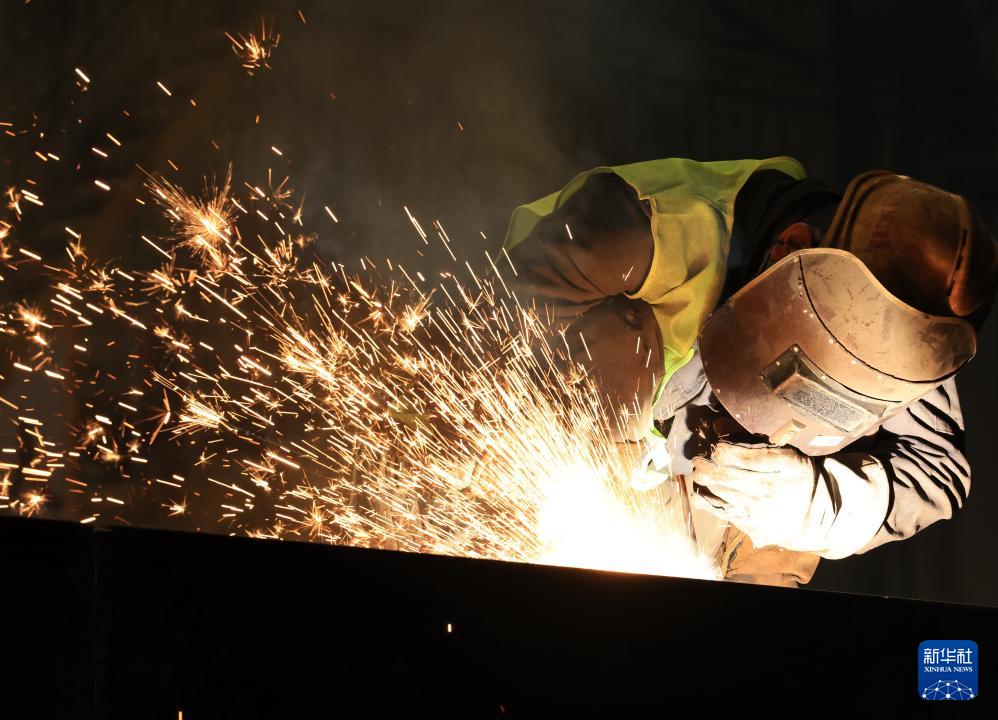 1月5日,工人在河北省樂亭縣經(jīng)濟(jì)開發(fā)區(qū)一家腳手架企業(yè)焊接車間工作。
