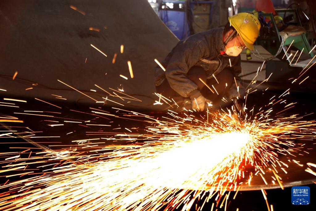 1月5日,江蘇泰州口岸船舶有限公司廠區(qū)內(nèi),工人進(jìn)行打磨作業(yè)。