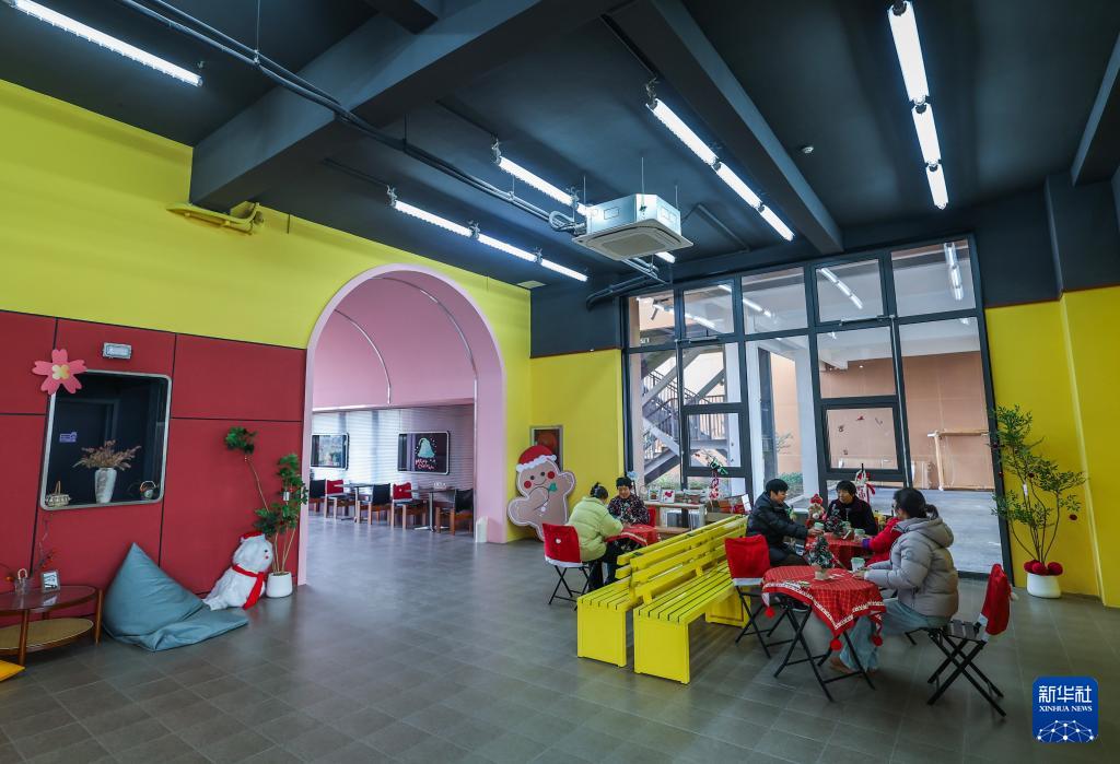 1月6日,村民在長(zhǎng)興縣呂山鄉(xiāng)胥倉(cāng)村農(nóng)事服務(wù)中心的咖啡屋內(nèi)休息、喝咖啡。