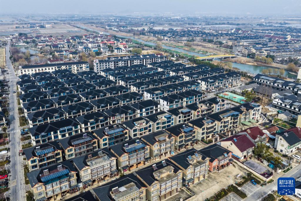 1月6日拍攝的長(zhǎng)興縣呂山鄉(xiāng)胥倉(cāng)村的農(nóng)民新村(無(wú)人機(jī)照片)。