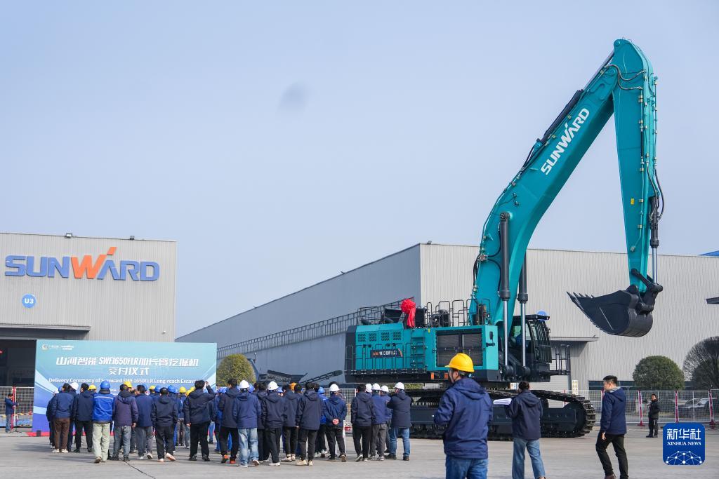 當(dāng)日,出口中東地區(qū)的山河智能SWE1650FLR加長臂挖掘機(jī)在長沙山河工業(yè)城舉行交付儀式。此次出口中東地區(qū)的SWE1650FLR加長臂挖掘機(jī),憑借10.8米動臂與7.7米加強(qiáng)斗桿的組合設(shè)計,可實現(xiàn)最大挖掘高度17.2米,最大挖掘深度13.3米,大挖掘距離覆蓋20.5米,是國內(nèi)同級別臂長最長的超大型挖掘機(jī),適應(yīng)高速公路、鐵路高邊坡等高難度工況,滿足港口碼頭、大型料場等廣域作業(yè)需求。