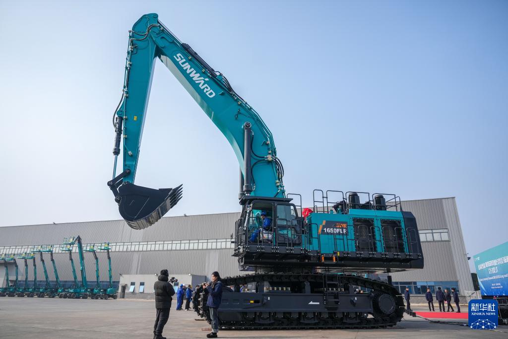 這是1月6日在長沙山河工業(yè)城拍攝的山河智能SWE1650FLR加長臂挖掘機(jī)。