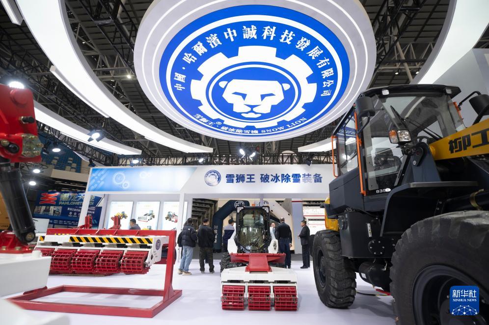1月6日在2026哈爾濱國(guó)際冰雪經(jīng)濟(jì)博覽會(huì)冰雪裝備展區(qū)拍攝的破冰除雪裝備。