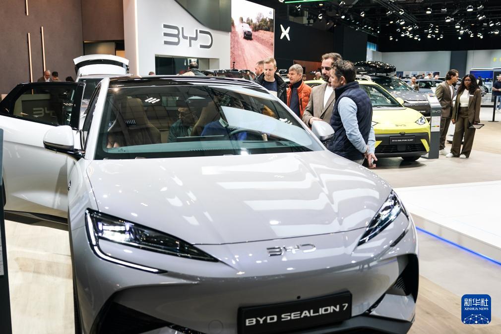 1月10日,在比利時(shí)2026布魯塞爾車(chē)展上,觀眾參觀比亞迪展臺(tái)。