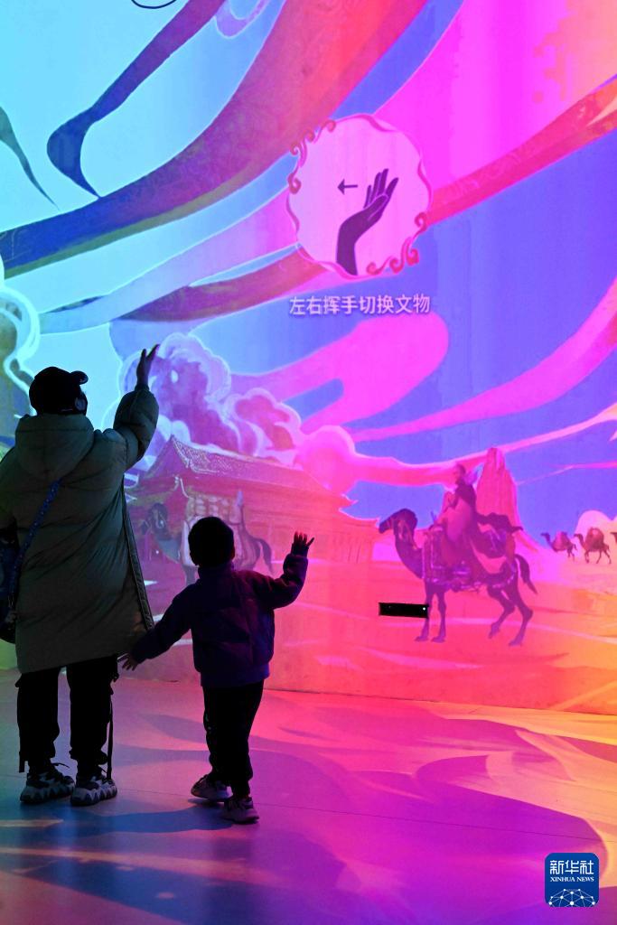 1月13日,小朋友在河北博物院數(shù)字互動體驗展中體驗互動。
