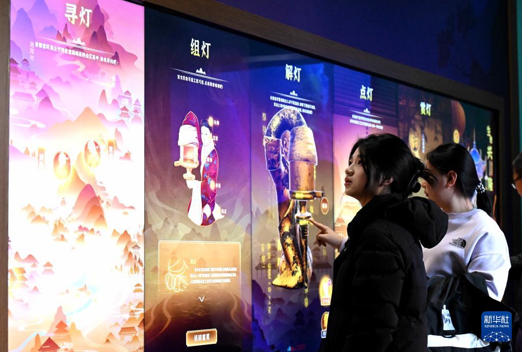 1月13日,參觀者在河北博物院數(shù)字互動體驗展中體驗互動。