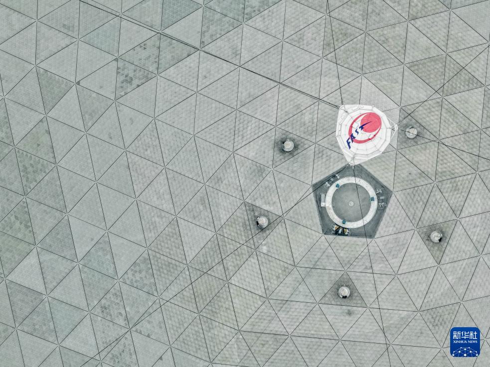 1月16日拍攝的“中國天眼”(無人機(jī)照片,維護(hù)保養(yǎng)期間拍攝)。