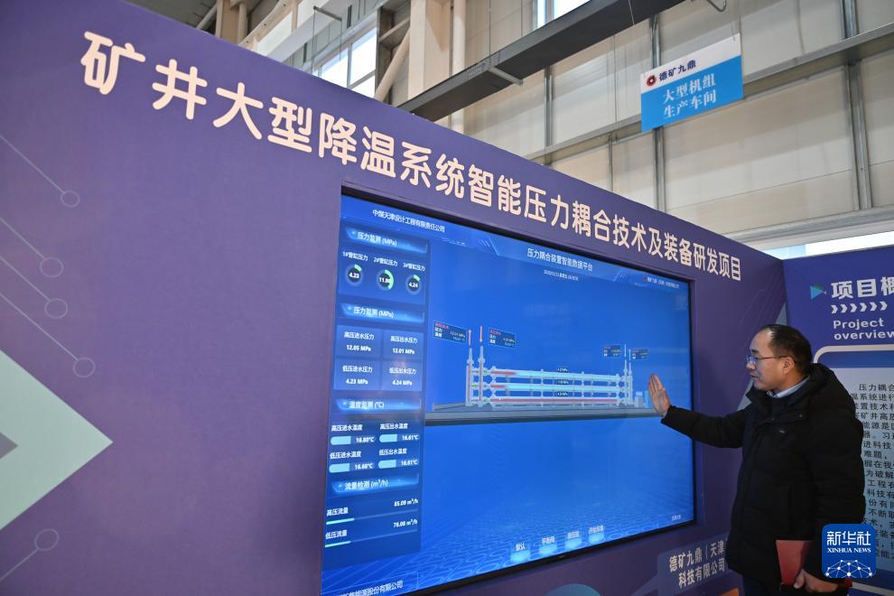 在位于京津中關(guān)村科技城的德礦九鼎(天津)科技有限公司,參與該企業(yè)大型智能壓力耦合裝備研發(fā)的天津大學團隊負責人王越向記者介紹壓力耦合裝置運行原理(1月23日攝)。
