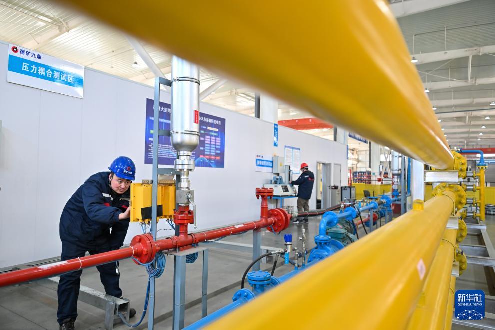 在位于京津中關(guān)村科技城的德礦九鼎(天津)科技有限公司,工作人員在對一壓力耦合裝置中試平臺進行調(diào)試(1月23日攝)。