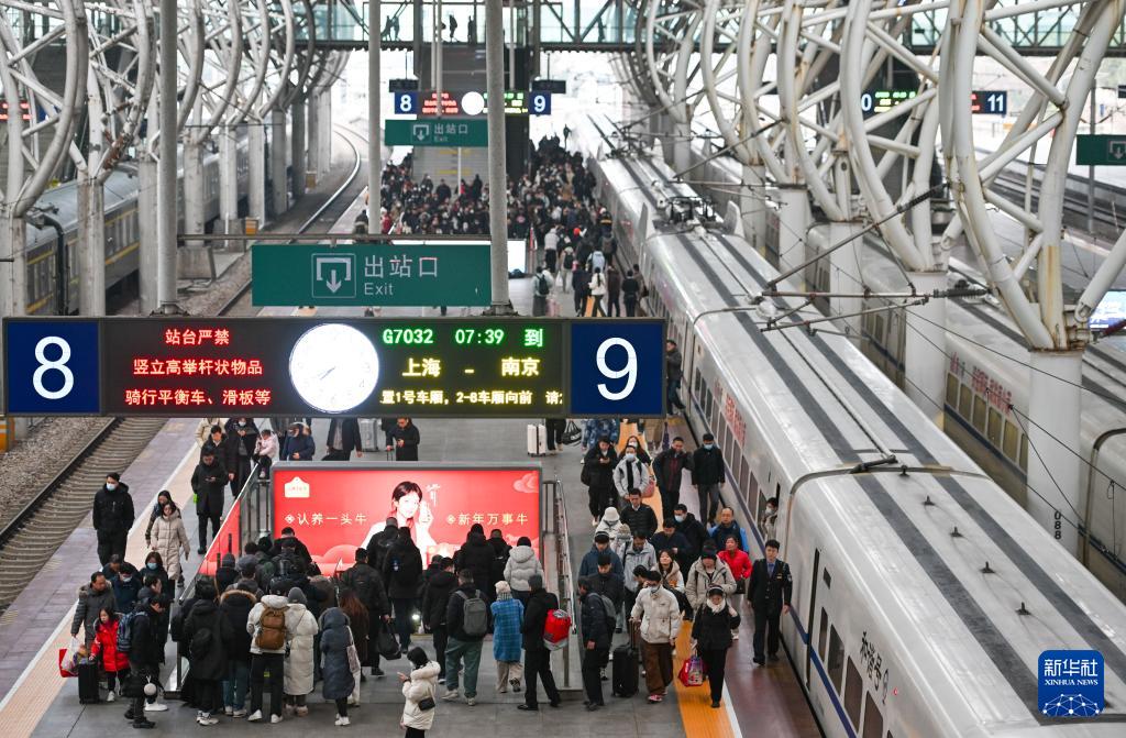 2月2日凌晨,旅客在南京火車站乘車出行。