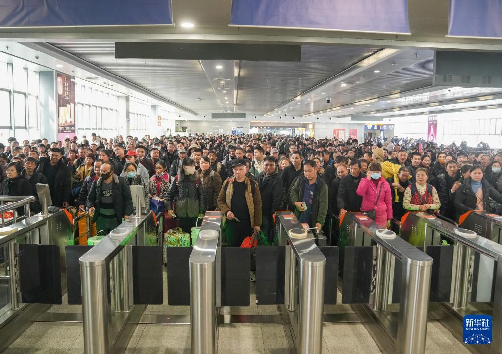 2月2日,旅客在滬昆高鐵貴州銅仁南站轉(zhuǎn)乘。