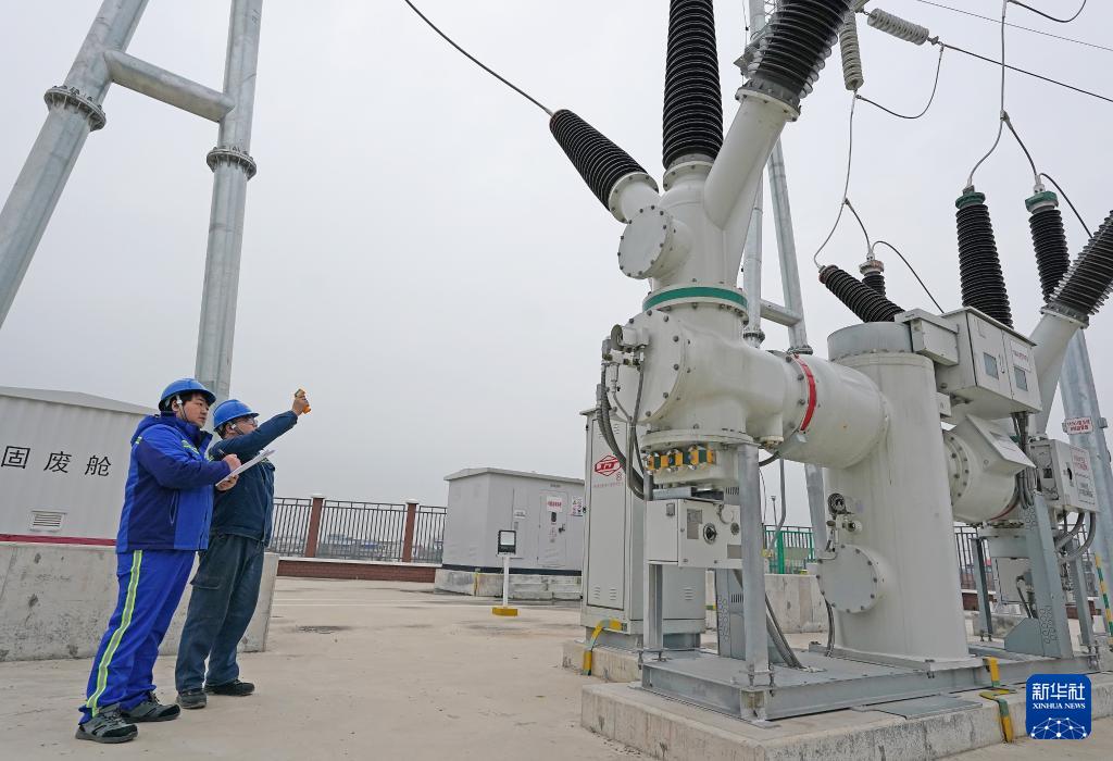 運(yùn)維值班員孫鵬飛(左)在棉船風(fēng)電廠查看變壓器的運(yùn)行情況(1月29日攝)。