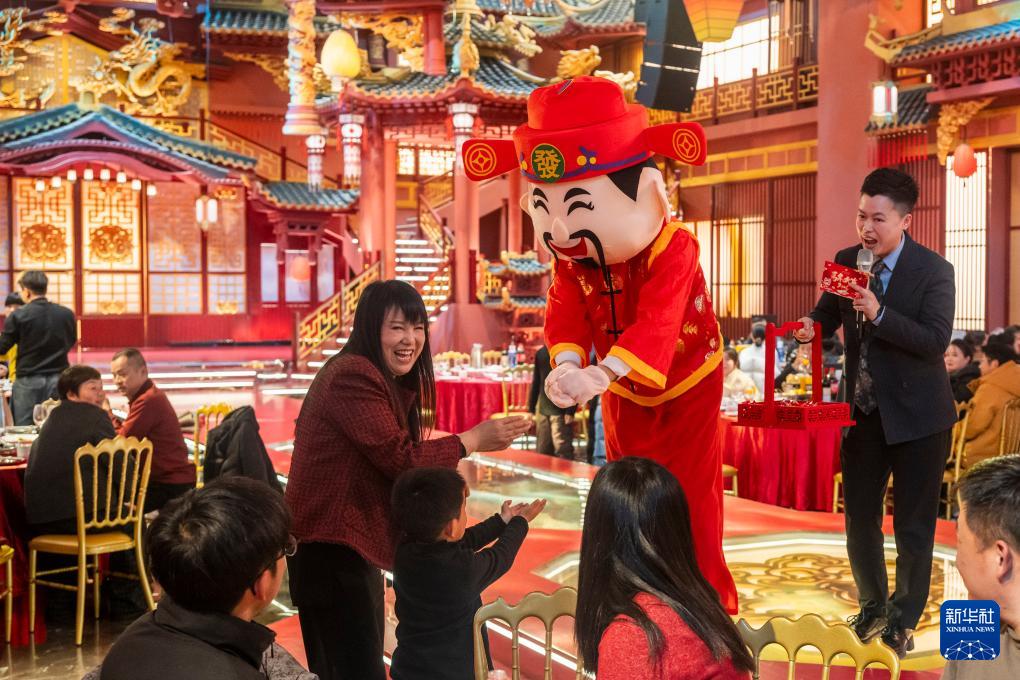 2月16日,人們?cè)诎不帐∈徍蟹辈齾^(qū)繁陽(yáng)鎮(zhèn)一家酒店內(nèi)吃年夜飯。