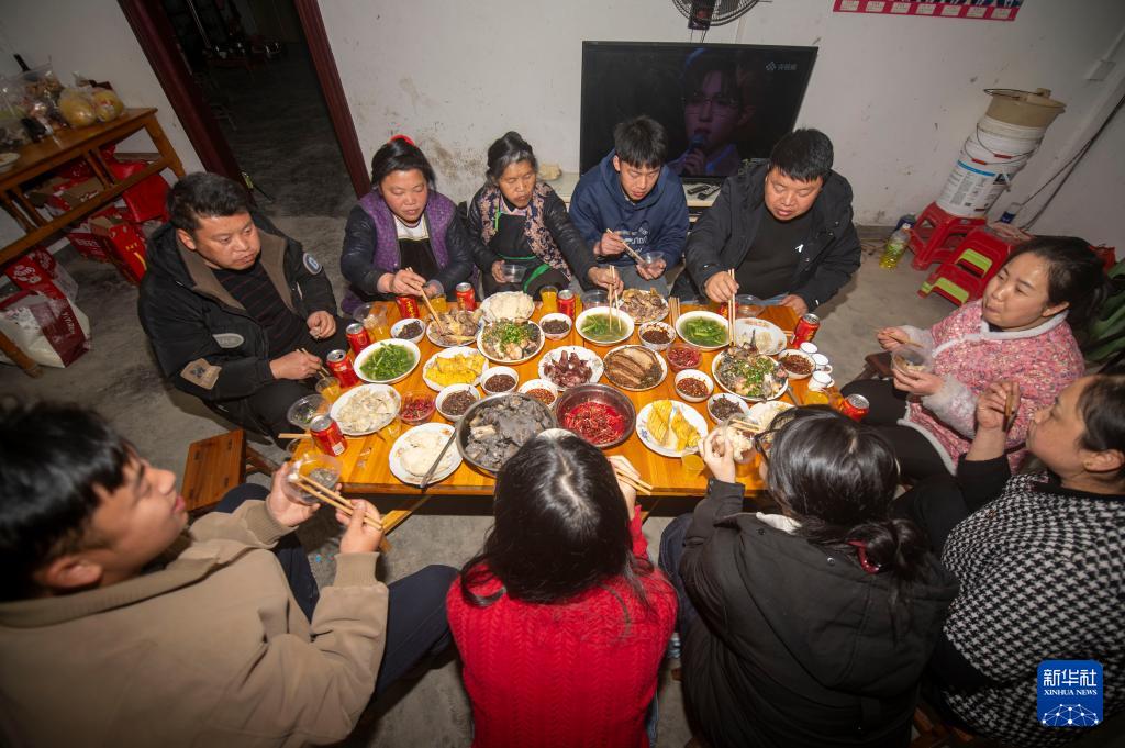 2月16日,貴州省黔東南苗族侗族自治州從江縣丙妹鎮(zhèn)大塘村一戶居民吃年夜飯。