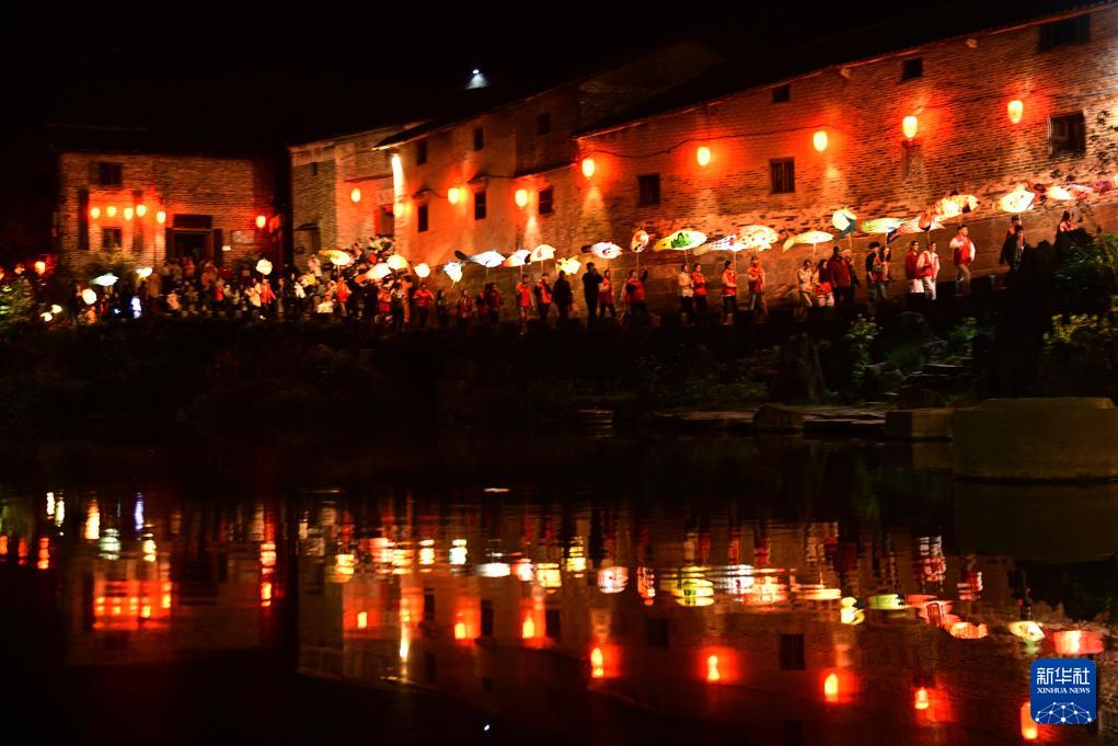 2月18日,人們高舉魚龍燈在廣西賀州昭平縣黃姚古鎮(zhèn)老街游行。