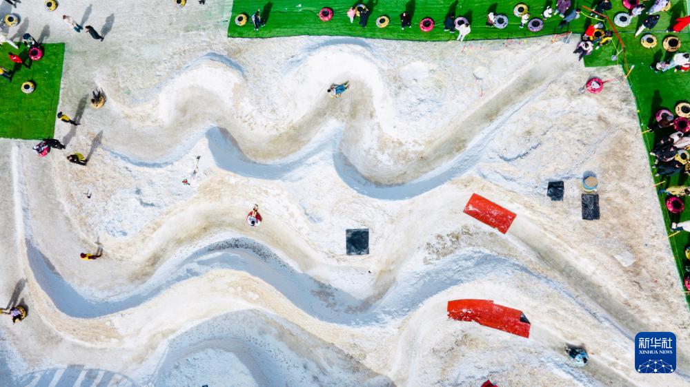 2月21日,游客在湖北省宜昌市夷陵區(qū)的百里荒滑雪場參加趣味活動(dòng)。