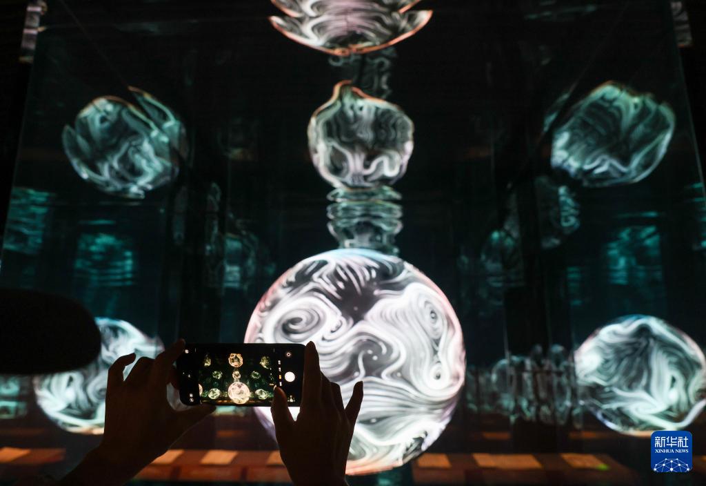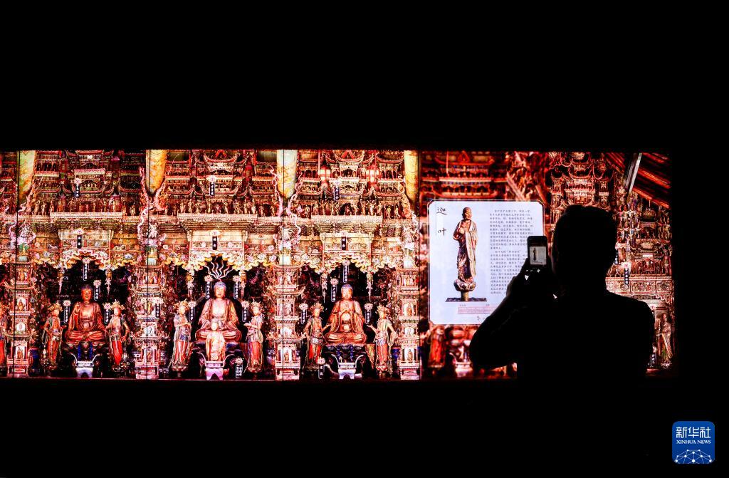2月27日,參觀者在“既往未來(lái)——小西天文物擷珍與懸塑藝術(shù)特展”的“無(wú)量之境”展臺(tái)拍攝。