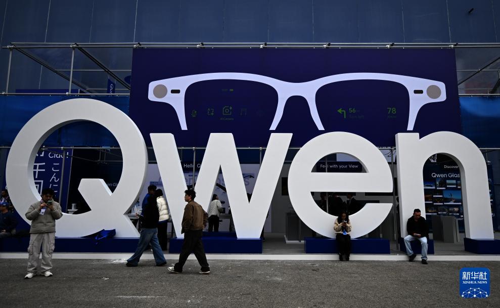3月2日,在西班牙巴塞羅那舉辦的世界移動(dòng)通信大會(huì)上,參觀者在千問(wèn)展臺(tái)參觀。