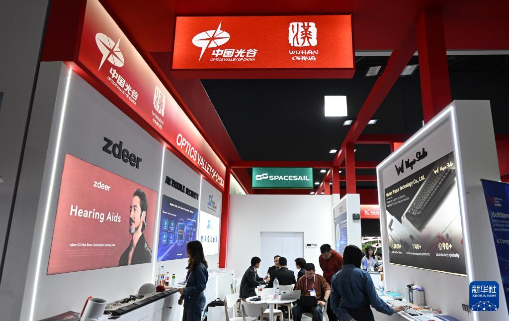 3月3日,在西班牙巴塞羅那舉辦的世界移動(dòng)通信大會(huì)上,人們參觀中國(guó)光谷展臺(tái)。