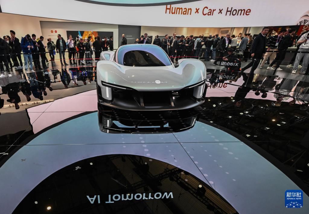 這是3月2日在西班牙巴塞羅那舉辦的世界移動(dòng)通信大會(huì)上拍攝的小米展臺(tái)的一款汽車。