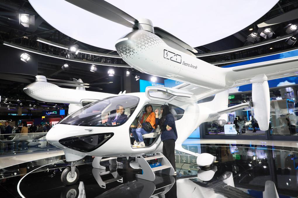 人們?cè)诘诎藢眠M(jìn)博會(huì)汽車(chē)及智慧出行展區(qū)時(shí)的科技展位體驗(yàn)電動(dòng)垂直起降飛行器(2025年11月8日攝)。