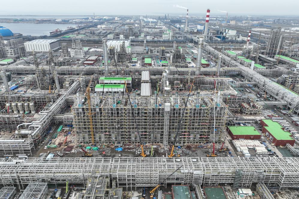 這是國(guó)家支持東北振興重點(diǎn)項(xiàng)目、沙特阿美公司與中國(guó)企業(yè)共同投資的華錦阿美精細(xì)化工及原料工程項(xiàng)目施工現(xiàn)場(chǎng)(2025年10月10日攝,無(wú)人機(jī)照片)。