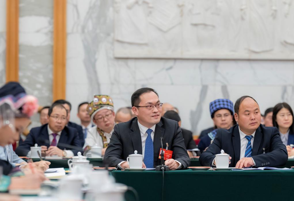 2026年3月5日,在十四屆全國(guó)人大四次會(huì)議貴州代表團(tuán)全體會(huì)議上,全國(guó)人大代表洪湖鵬(前右二)作題為《發(fā)揮比較優(yōu)勢(shì) 推動(dòng)磷化產(chǎn)業(yè)向好向新向綠發(fā)展》的發(fā)言。