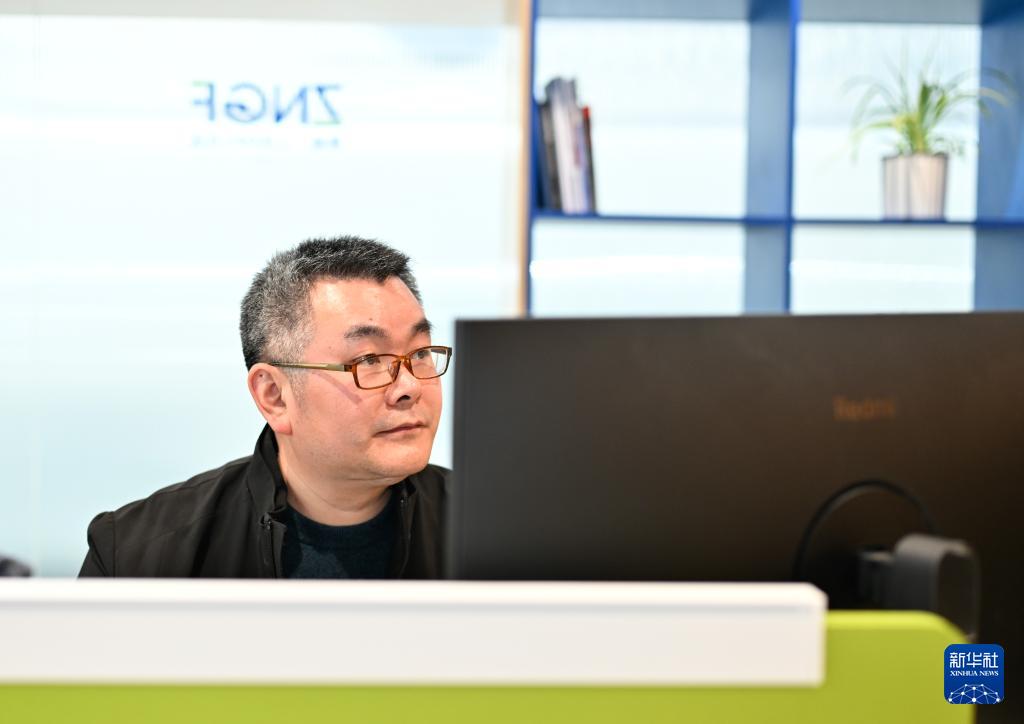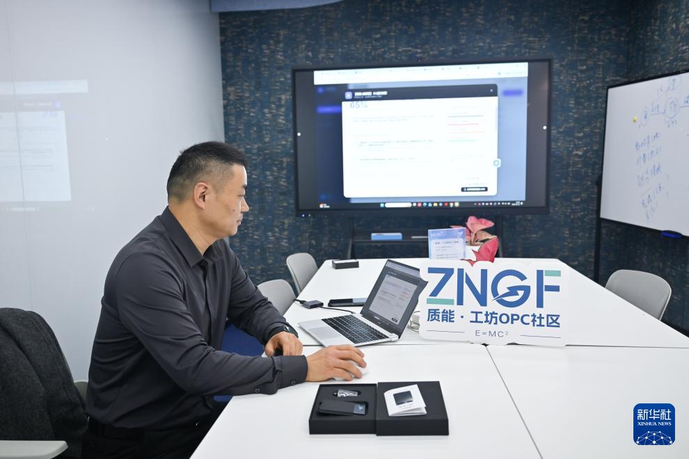 3月11日,在位于中國(南京)軟件谷的 “質能·工坊”O(jiān)PC 社區(qū),江蘇小微數字科技有限公司創(chuàng)始人左賦斌在研發(fā)產品。
