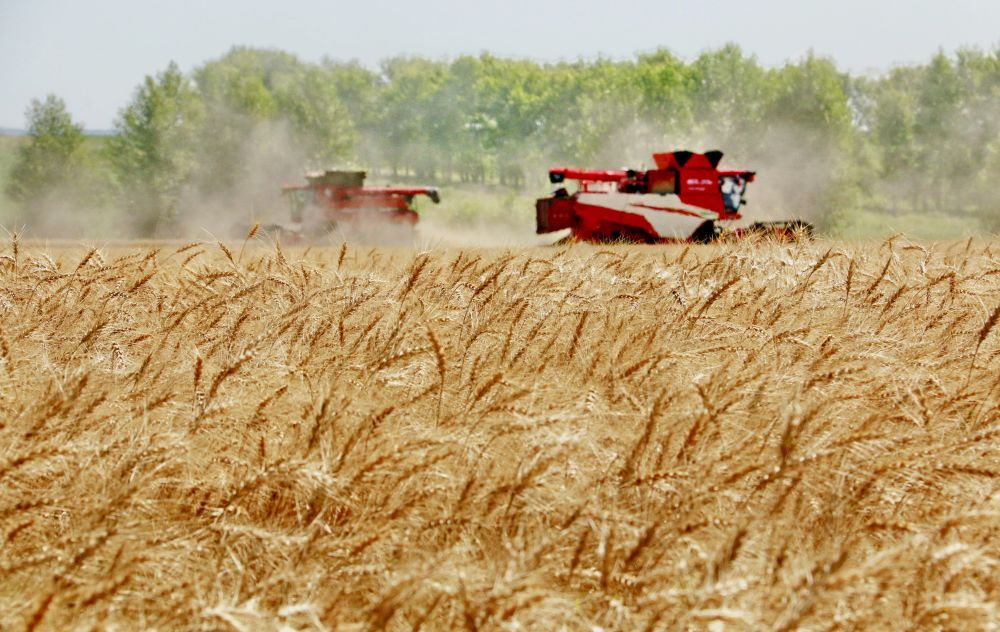 2025年8月5日,位于黑龍江省五大連池市的大慶油田農(nóng)場(chǎng)調(diào)動(dòng)多臺(tái)聯(lián)合收割機(jī)搶收小麥。新華社發(fā)(陸文祥 攝)