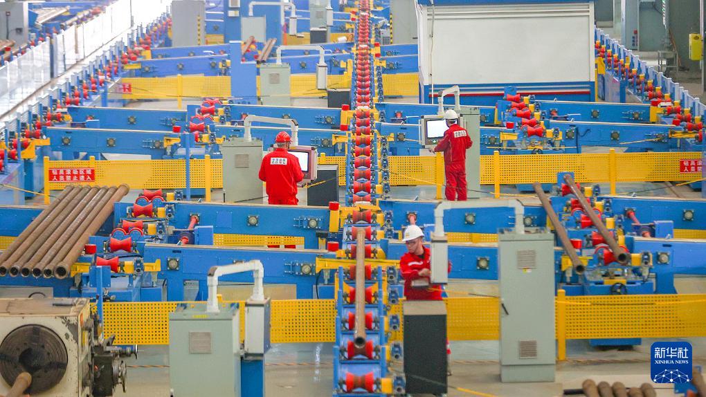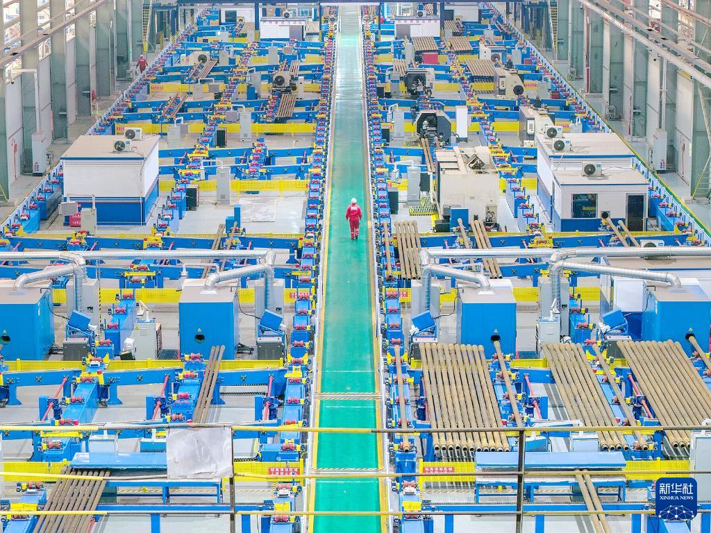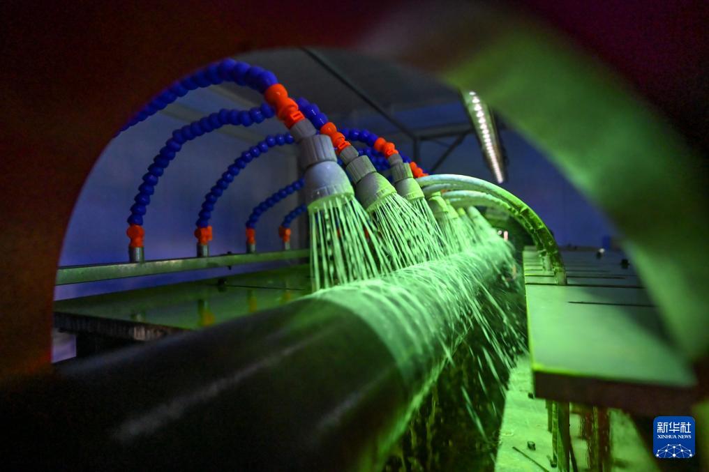 3月17日,在中海油服鉆井事業(yè)部鉆具檢維修自動化車間,鉆桿進(jìn)行探傷作業(yè)。