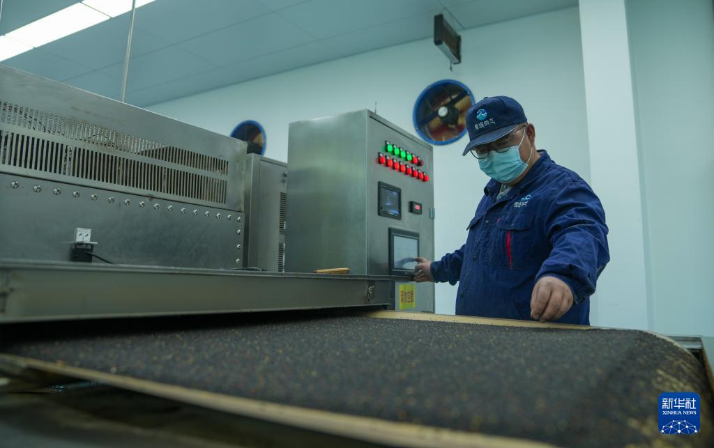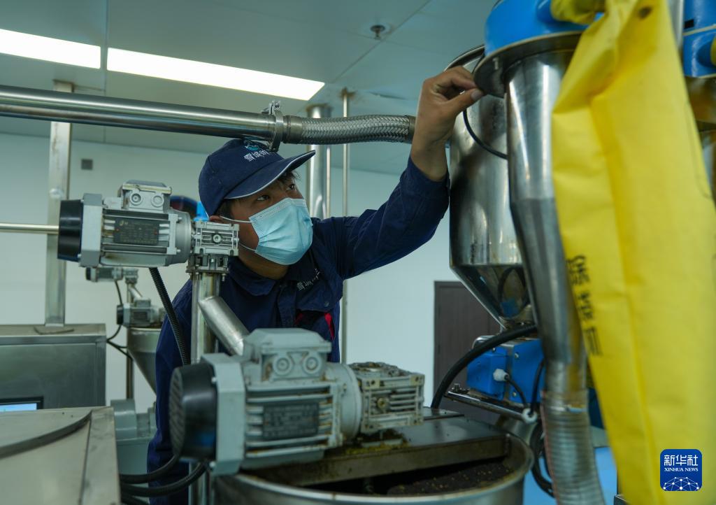 西藏山南市扎囊縣重點(diǎn)招商引資企業(yè)——西藏納蘭生態(tài)產(chǎn)業(yè)有限公司工作人員操作微波烘烤設(shè)備制作食用油(3月17日攝)。