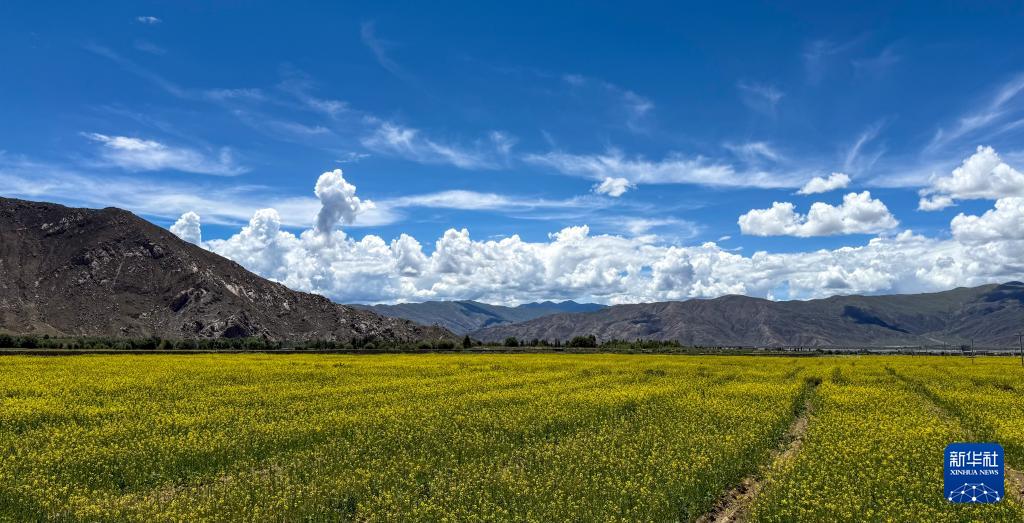 西藏山南市扎囊縣境內(nèi)的油菜花田(2025年7月31日攝)。