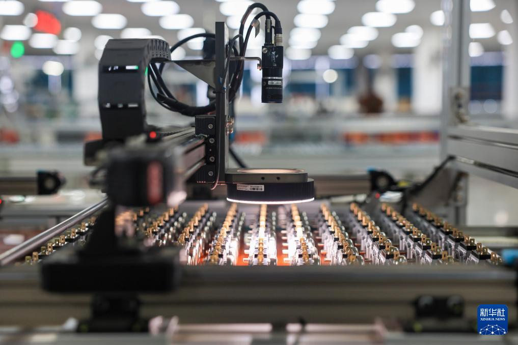 3月16日,在江蘇省靖江市西來鎮(zhèn)的江蘇沙龍機電科技有限公司生產(chǎn)車間內(nèi),電子元件自動檢測線正開展檢測作業(yè)。